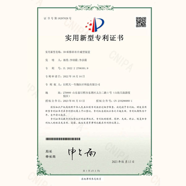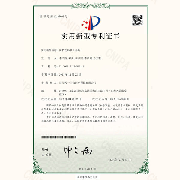 2011年,天一生物與山東省藥學科學院建立產學研合作,聯合研發疝修補類器械。該產品研發后曾在首都醫科大學附屬北京朝陽醫院、首都醫科大學附屬北京同仁醫院進行臨床試驗,試驗結果表明,本公司產品組合形狀更符合臨床使用要求,方便臨床醫生術中操作,目前共擁有四大系列產品,臨床使用效果得到了行業眾多專家的一致好評。